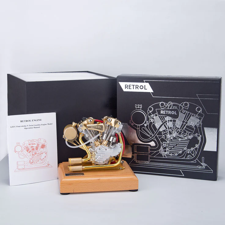 .Based on the V-twin double-cylinder Knucklehead motorcycle engine in the 1970s, the miniature gasoline mini knuckle head engine model embodies the spirit of different ages in a wonderful way.